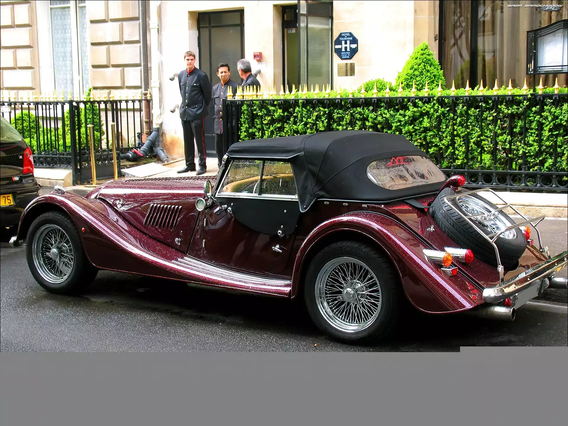 Samochód: dach, opona, Samochody Zabytkowe, Morgan, światła