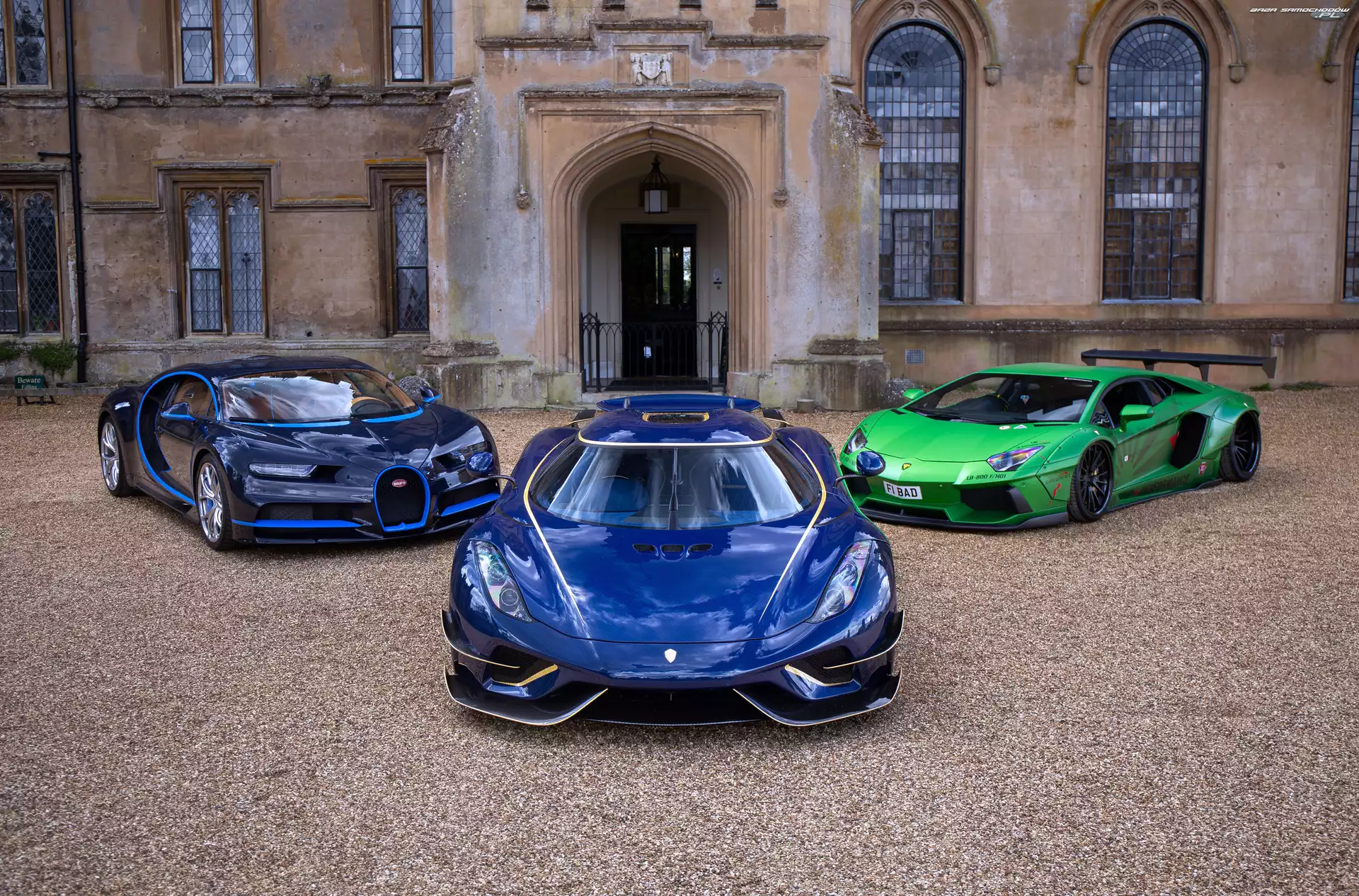 Koenigsegg Regera, Bugatti Chiron, Lamborghini Aventador Liberty Walk, Trzy, Samochody- Zdjęcia samochodów |