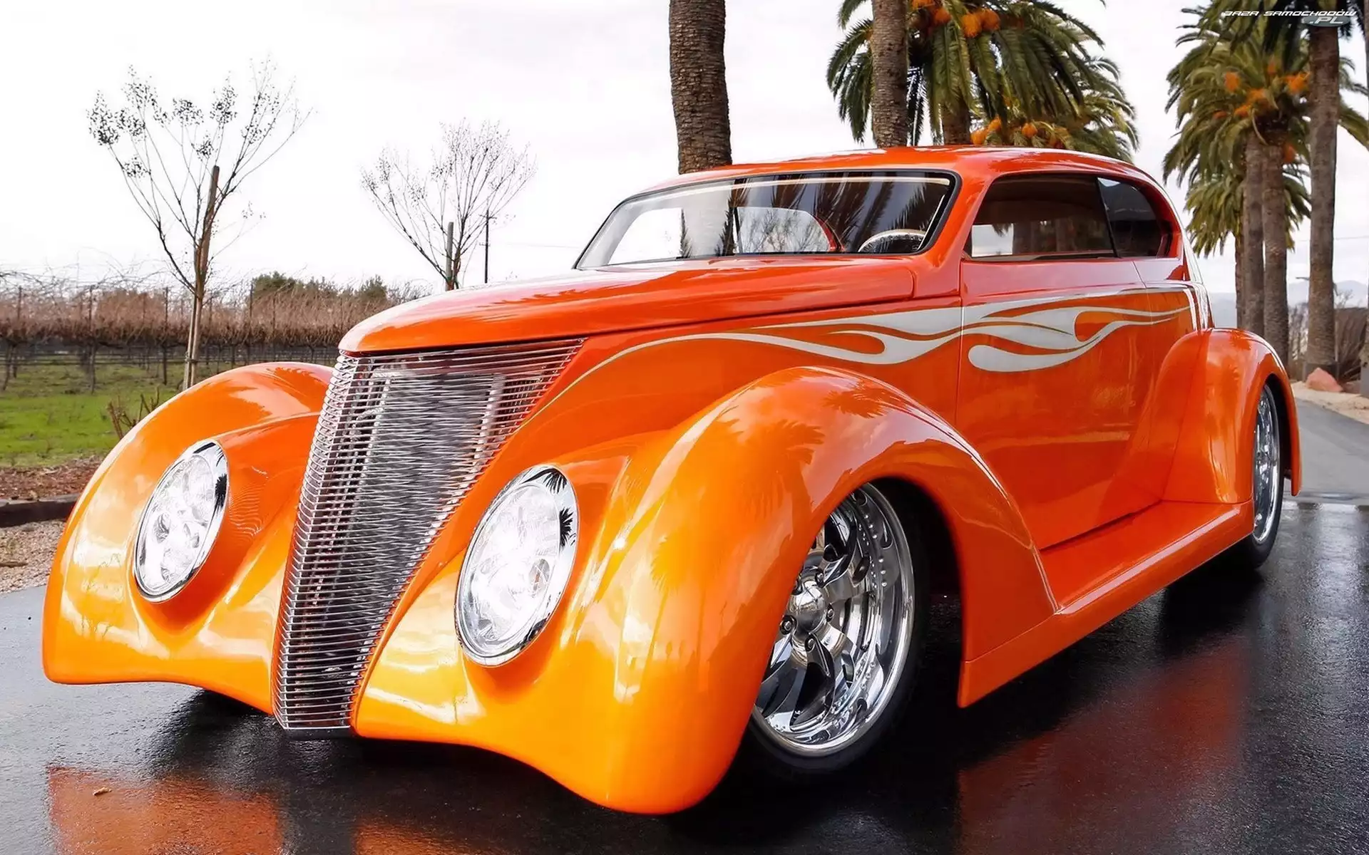 Palmy, Sedan, Samochód, Pomarańczowy, Ford- Zdjęcia samochodów
